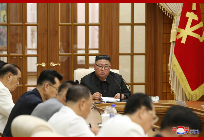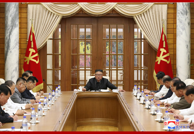 The meeting, chaired by Supreme Leader Kim Jong Un, marked an important occasion in devotedly protecting the security of the country and the people and stabilizing and improving their living standard as it took practical measures to celebrate the 75th founding anniversary of the Party as a genuine and auspicious holiday of the people and successfully conclude the campaign this year, the last year of the 5-year strategy for national economic development, despite the unprecedented crisis and natural disasters. -0-
