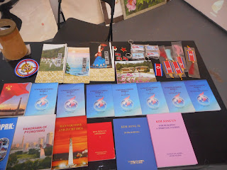In addition to the posters we had a literature table and sold a big quantity of DPRK books as well badges and small souvenirs . We also showed videos of the DPRK film