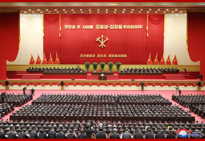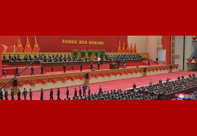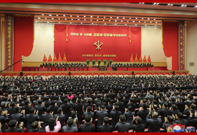 Kim Jong Un, general secretary of the WPK, took the platform with secretaries of the WPK Central Committee to guide the third-day sitting of the conference.