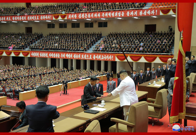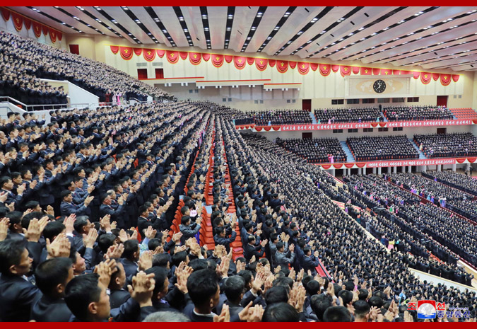 All the participants in the conference raised stormy cheers in honor of Kim Jong Un who is enhancing the leadership and fighting efficiency of the great Kimilsungist-Kimjongilist Party in every way by constantly increasing the function and role of the basic organizations of the Party, as required by a period of new development, a period of a new leap forward, of our revolution.