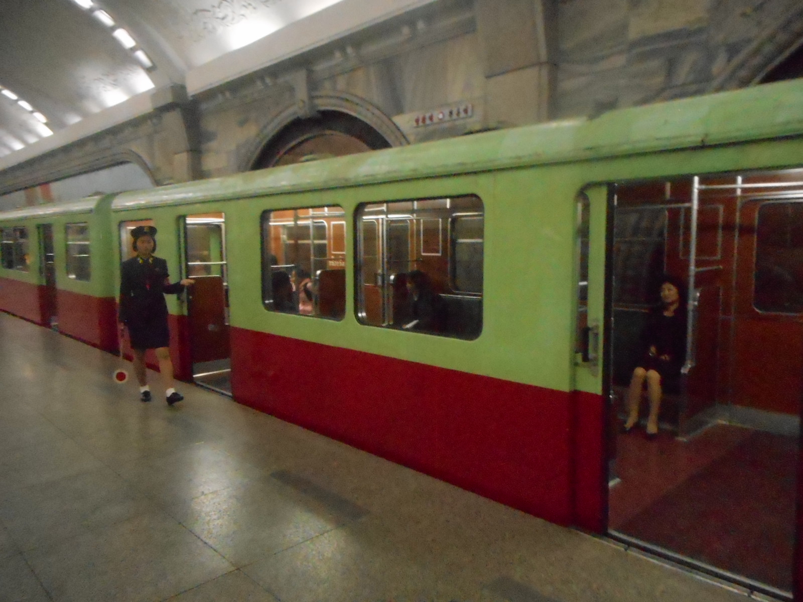 Rodong Sinmun . To my slight surprise instead of leaving the station as we had done on previous visits we boarded another train. It is a myth of Western, imperialist , bourgeois propaganda that there are only two stations on the Pyongyang Metro , this is another lie of the imperialists !!! I was told it is planned to extend the Metro to Kwangbok street in the south of Pyongyang and to West Pyongyang and extending the Metro to the airport is not ruled out .