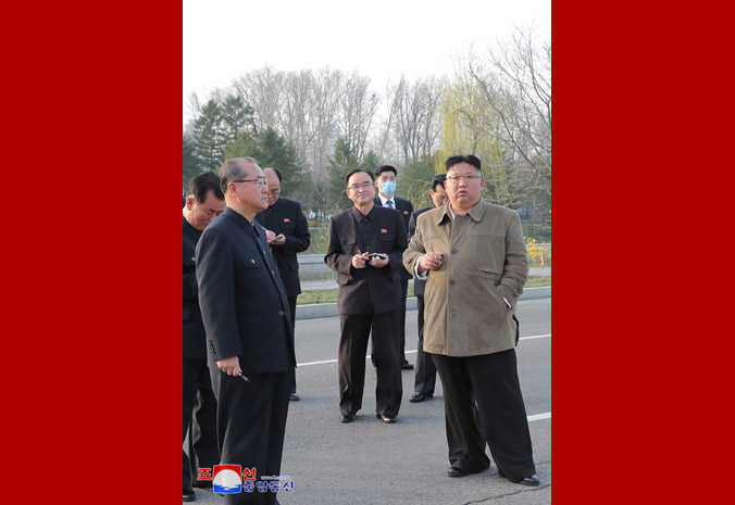 Kim Jong Un, general secretary of the Workers’ Party of Korea and president of the State Affairs of the Democratic People’s Republic of Korea, looked round the site again with secretaries of the Party Central Committee.