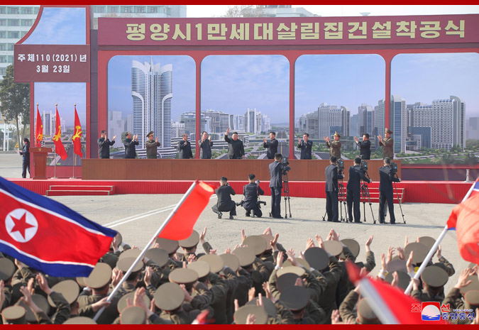 A ground-breaking ceremony for building 10 000 flats in Pyongyang took place in the Songsin and Songhwa areas of Sadong District on Mar. 23.