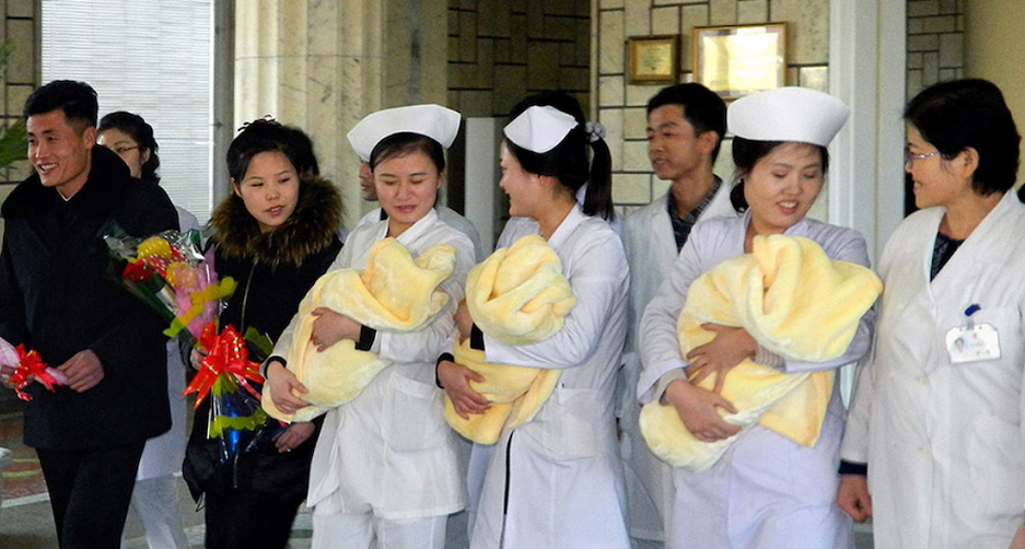 The Pyongyang Maternity Hospital and similar hospitals in various parts of the country deliver babies. The triplets as well as their parents respectively receive an ornamental silver dagger or gold ring, and they are provided with a posh house and enjoy various benefits and privileges. Social benefits like reduction of labour hour are bestowed on women with several children. There are no instances of firing women or reducing their salaries on the plea of having children.