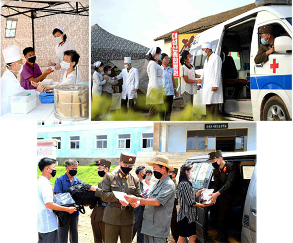 Army doctors of the Taesongsan General Hospital are taking a warm care of the health of the people in Taechong-ri.