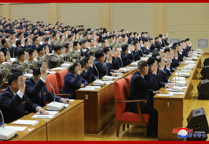 The speakers fully supported and approved of the WPK Chairman’s outstanding idea and strategy of making frontal breakthrough and the programme for their materialization that call for accomplishing earlier the great cause of self-prosperity despite all challenges and difficulties in the way of advance in the socialist construction.