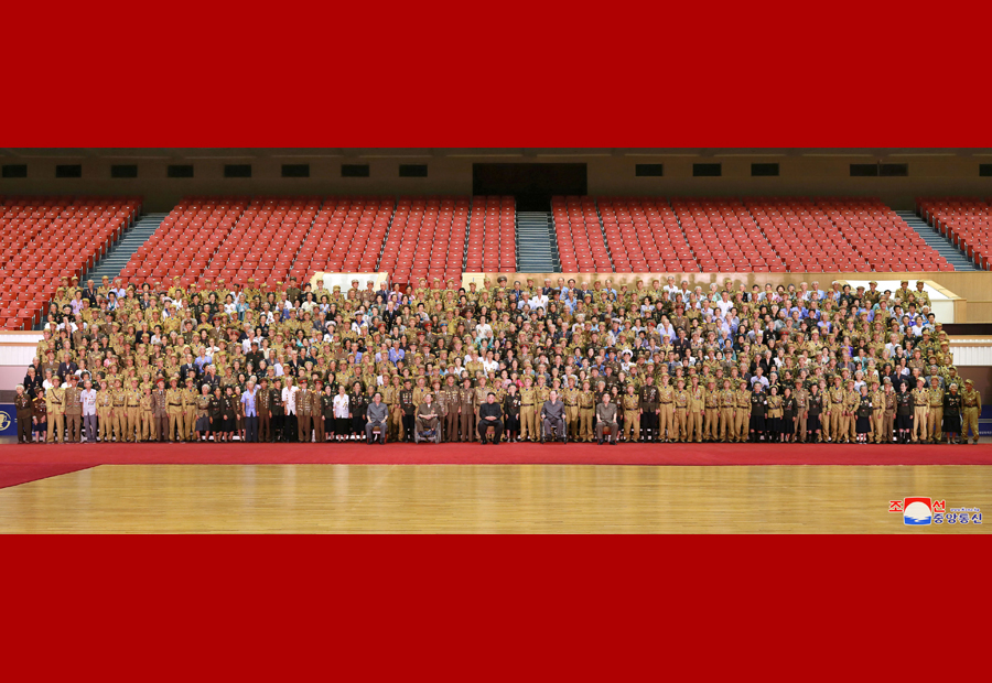 Pyongyang, July 30 (KCNA) — Kim Jong Un, general secretary of the Workers’ Party of Korea (WPK) and president of the State Affairs of the Democratic People’s Republic of Korea, met and had a photo session with the participants in the 7th National Conference of War Veterans on July 29.