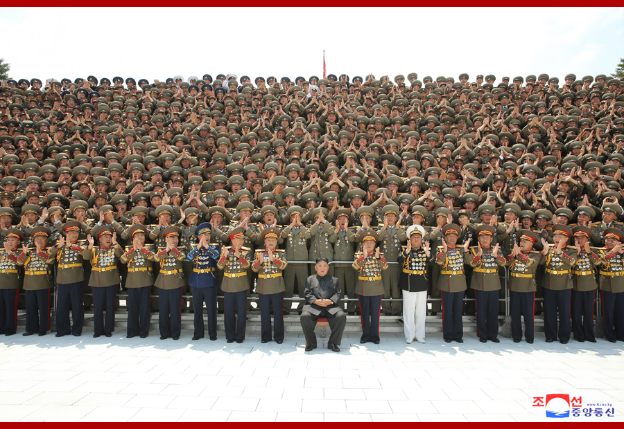 Pyongyang, July 30 (KCNA) — Kim Jong Un, general secretary of the Workers’ Party of Korea, president of the State Affairs of the Democratic People’s Republic of Korea and supreme commander of the armed forces of the DPRK, had a significant photo session with the participants in the first workshop of the commanders and political officers of the Korean People’s Army at the office building of the Party Central Committee on July 27, the holiday of the great war victory.