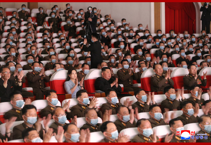 The Mansudae Art Theatre was full of immense happiness and enthusiasm of the members of the art groups of servicemen’s families excited to give performance in the presence of the respected General Secretary whom they missed awake or asleep.