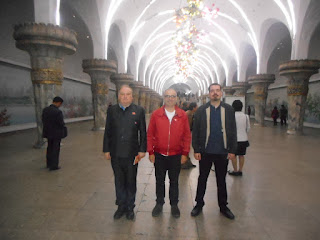 We got to travel outside of Pyongyang and view the countryside, in particular Mount Myohyang in the north, and Kaesong in the south, going all the way up to Panmunjon, the North-South border and the cause of much suffering for Koreans striving for independence and reunification. There is no doubt the Korean countryside is extremely beautiful. Farms looked plentiful and a lot of manual labour was being done. A picnic was greatly enjoyed on both days, although the Koreans insisted that our glasses be filled and refilled with Soju, the local strong drink! The International Friendship Exhibition displayed gifts to the leaders from various countries, parties, groups and individuals throughout the world, with reminders of the closeness and solidarity of the old socialist bloc with large sections devoted to the Eastern bloc states, the USSR and the GDR. Cars gifted by Stalin and Malenkov were also on display. Erich Honecker dedicated a lot of guns, while under the Austrian section I noticed a bust of Mozart.