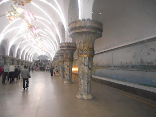 The 74th anniversary of the WPK was celebrated on October 10th, and we paid a visit to the Party Foundation Museum, where I was most pleased to see photos of Marx, Lenin and Stalin hanging in one of the main meeting rooms, and to the Workers Party Monument in central Pyongyang, an impressive and large structure decorated with murals depicting scenes from the Korean revolution. The surrounding area had a small park and a water feature, and despite being in the centre of Pyongyang was very quiet and relaxing. While on the subject of Pyongyang, it’s worth mentioning that we saw women riding bikes, disabled people, and even got stuck in the occasional traffic jam! Shocking news indeed for anyone who thought it was a ghost city where people only left the house to look busy when foreign tourists were around. In response to recent NK News stories, we also didn’t see anyone taking drugs or clearly on drugs. But for NK News, researching the facts of a story appears to be a major inconvenience not to be bothered with, as we at KFA have found out. Anyway, back to Pyongyang – we also travelled once more on the beautiful Pyongyang Metro, with its very ornate stations, travelling beyond the touristy two stops all the way to the recently refurbished Kaeson station. Yes, the Pyongyang Metro has more than two stops and appears to be fully operational as well! The stations were clean and Kaeson even included shops before the main entrance. We exited at Kaeson to explore the Arch of Triumph and enjoyed impressive views across the city from the top