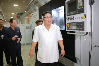 Kim Jong Un inspecting a machine-building factory in August 2016