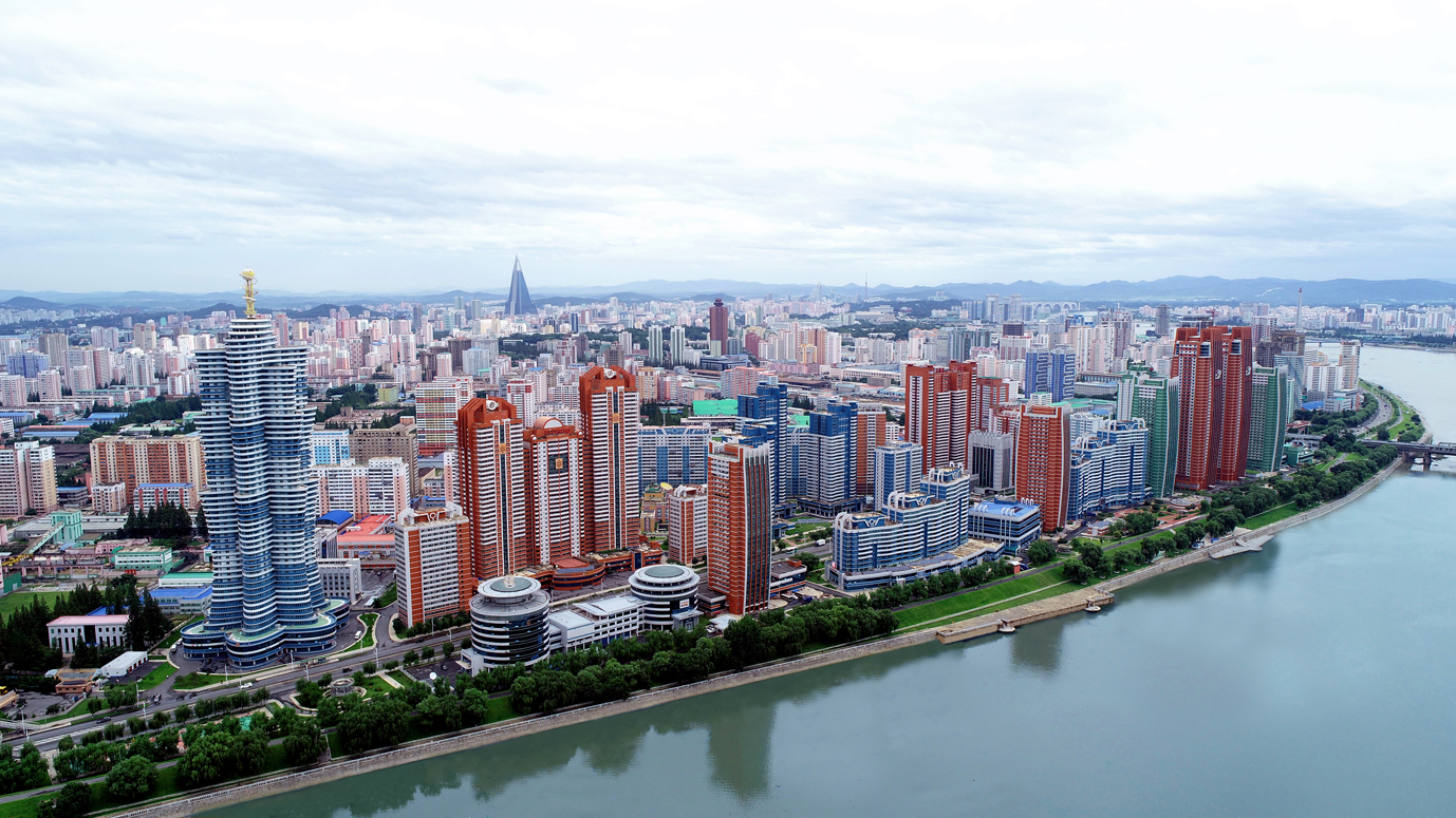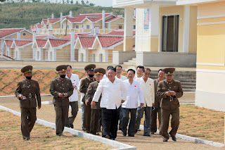 Kim Jong Un looking round the disaster-stricken area which was rehabilitated in September 2020