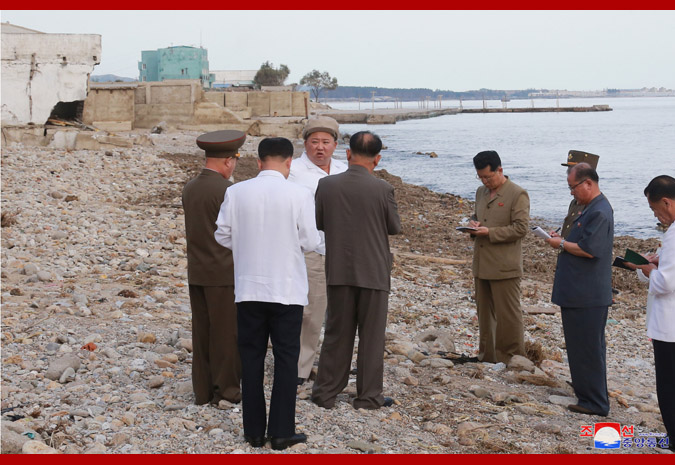 On Sept. 5, he arrived in the typhoon-hit areas in South Hamgyong Province and received a detailed report on the typhoon damage from vice-chairmen of the Party Central Committee.