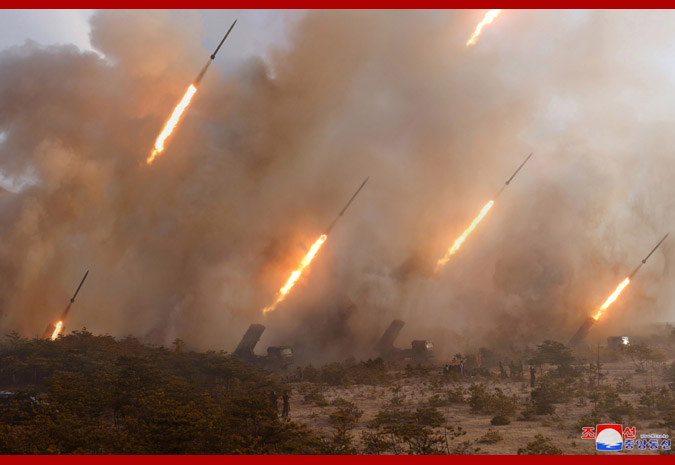 Pyongyang, March 10 (KCNA) — Kim Jong Un, chairman of the Workers’ Party of Korea, chairman of the State Affairs Commission of the Democratic People’s Republic of Korea and supreme commander of the armed forces of the DPRK, guided another firepower strike drill of long-range artillery sub-units of the Korean People’s Army on the front on March 9.