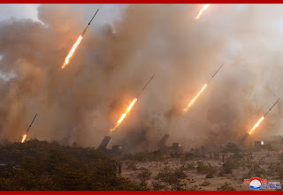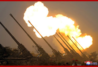 As an order to start the fire was given, the brave artillerymen on the front who have further sharply whetted the bayonet for the revolution with the high spirit of annihilating the enemy amid the flames of the training revolution personally kindled by the Supreme Leader and the wind of hard training for strengthening combat power, opened fire all at once.