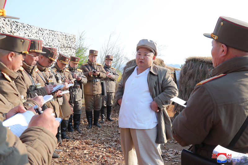 Kim Jong Un, chairman of the Workers’ Party of Korea, chairman of the State Affairs Commission of the Democratic People’s Republic of Korea and supreme commander of the armed forces of the DPRK, guided the drill of mortar sub-units of the KPA corps.