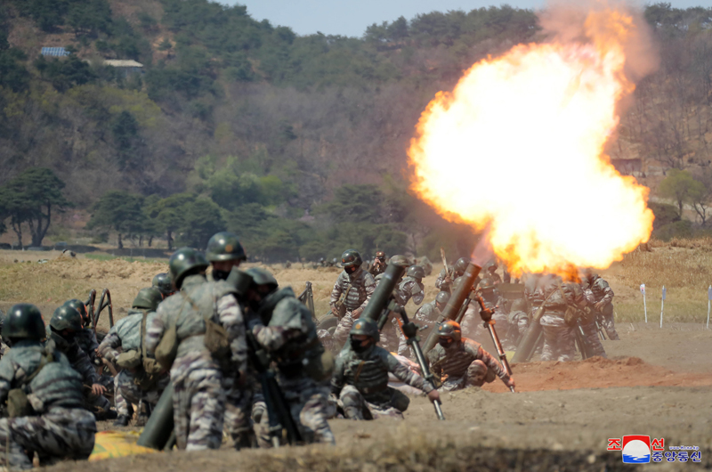 Pyongyang, April 10 (KCNA) — A drill of mortar sub-units of corps of the Korean People’s Army (KPA) took place at a stirring time when the hot wind of revolution in training sweeps across the KPA and the flame of modernizing weapons and equipment raises higher to increase the combat efficiency of the KPA under the far-reaching plan and energetic leadership of the Workers’ Party of Korea to further fortify the country’s defense capabilities. The drill was held also at a time when the unprecedented proud achievements are being made successively in developing the national defense capabilities.