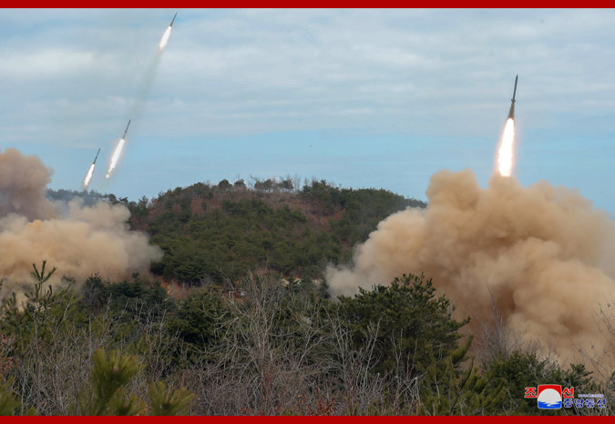 Pyongyang, March 3 (KCNA) — Kim Jong Un, chairman of the Workers’ Party of Korea, chairman of the State Affairs Commission of the Democratic People’s Republic of Korea and supreme commander of the armed forces of the DPRK, visited the firepower strike drill ground of long-range artillery sub-units of the Korean People’s Army on the front on March 2 to further kindle the flames of the training revolution.