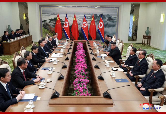 Warmly welcoming Xi Jinping’s visit to the DPRK this year that marks the 70th anniversary of the establishment of diplomatic relations between the DPRK and China, Kim Jong Un highly appreciated that his visit comes to be a decisive occasion to demonstrate the immutability and invincibility of the DPRK-China friendship before the world and is of great significance in further consolidating the friendly relations between the two countries that greeted a new age of vitality.