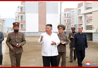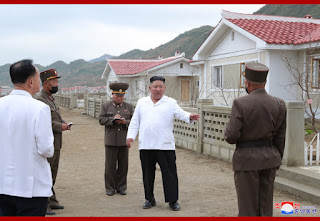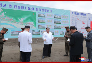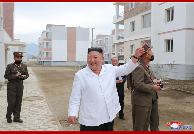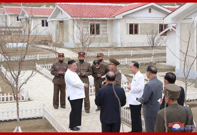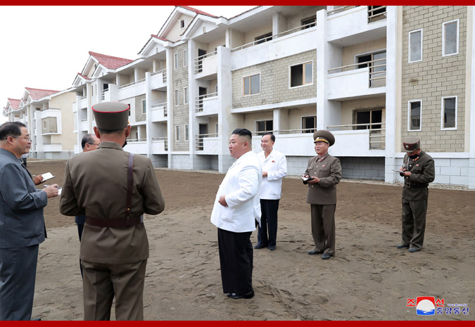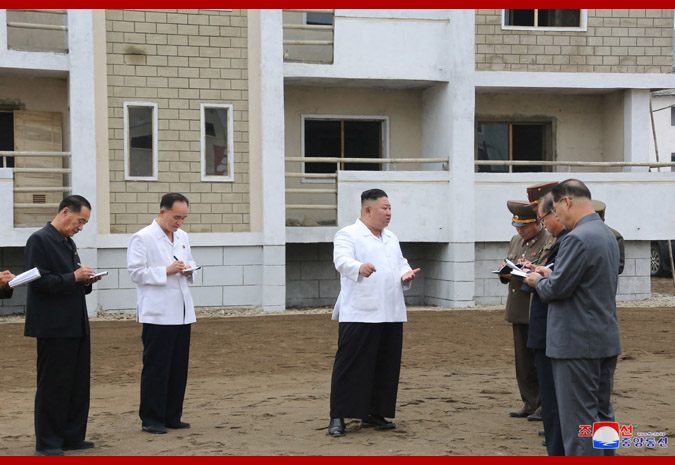 Looking round the site under reconstruction, Kim Jong Un learned in detail about damage to dwelling houses, to farming lands, to transport system, land and environment, city management, power field, and telecommunications in the area and about the progress in the recovery.
