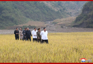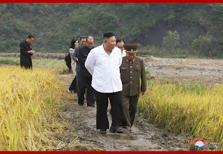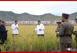 Kim Jong Un, on his way to and from Kimhwa County, stopped in field plots affected by disasters in several areas and learned about farming.