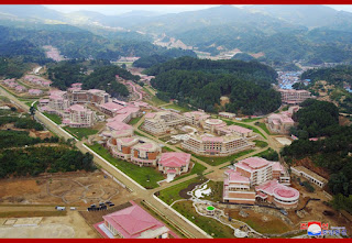 Making rounds of various places of the construction site of the hot spring resort for a long time, Supreme Leader of the Party, state and armed forces Kim Jong Un said with satisfaction that the characteristics of nature and topography were well preserved and a peculiar resort was formed in good harmony with the surrounding environment as planned by the Party and the section and arrangement are practical and every building is impeccable in view of architectural beauty.