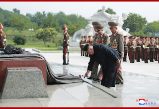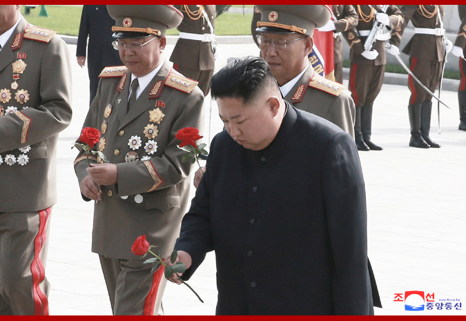 Supreme Leader of the Party, state and armed forces Kim Jong Un put a flower before the cemetery.