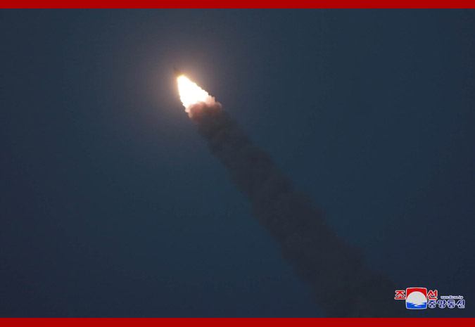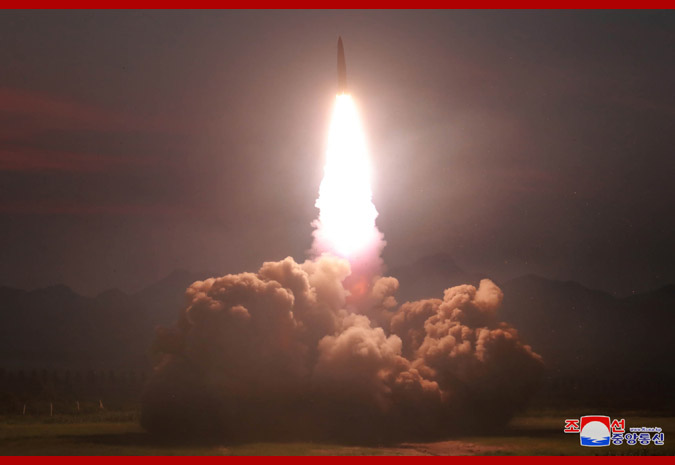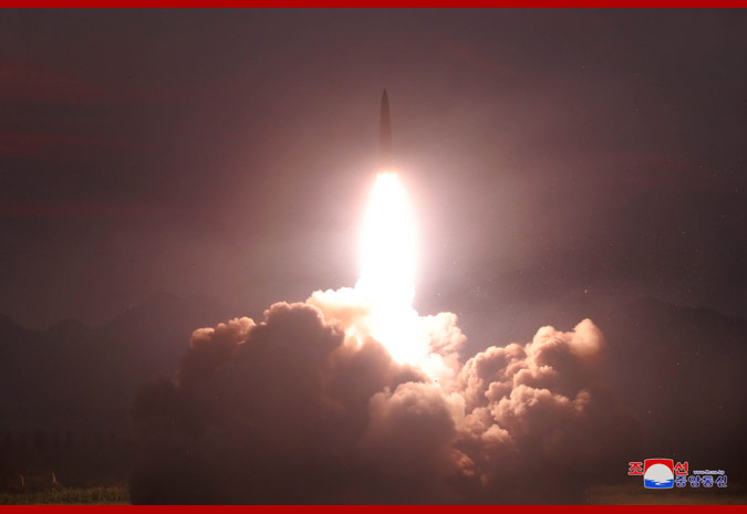 Two tactical guided missiles launched at the operational airfield in the western area of the country flied across the sky over the capital area and the central inland region of the country to precisely hit the targeted islet in the East Sea of Korea.