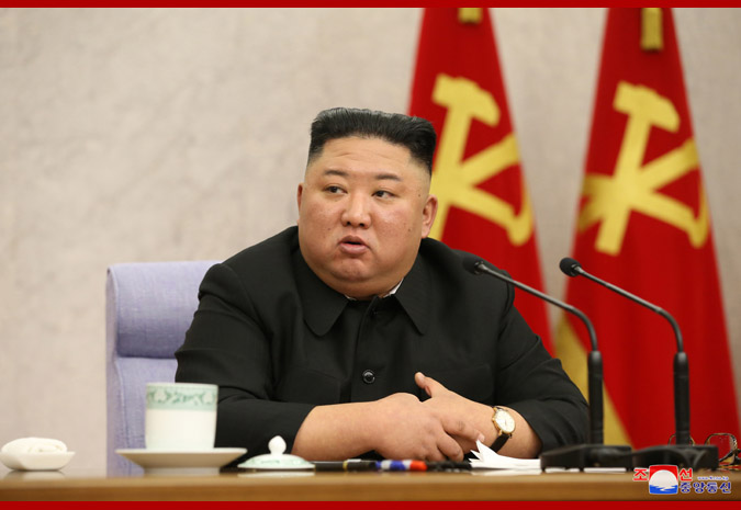 Kim Jong Un, general secretary of the Workers’ Party of Korea, continued his report on the first agenda item.