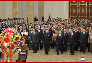 At the halls where the great leaders lie in state, Kim Jong Un made deep bows in token of his deepest reverence for them, the eternal leaders of our Party and people and peerlessly great sages who always live in the hearts of the people, providing them with inexhaustible power for victory and strong will for struggle and strengthening the pillar of their faith.